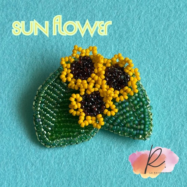 ひと粒ずつ丁寧に縫い留めたビーズで表現した、ひまわりのブローチです。 鮮やかな黄色と深いグリーンの葉が、コーディネートに華やかさを添えます。 バッグや帽子、ストールやジャケットの襟元など、様々なアイテムに簡単に取り付けられ、季節や気分に合わせたアレンジが楽しめます。 La Raison d’orのコットンバッグに合わせれば、より一層オリジナル感のあるスタイルに。 【ご使用上の注意】 ・繊細な作りのため、引っかかりや強い衝撃にご注意ください。 ・水濡れは変色や劣化の原因となりますので、お避けください。 ・手作業による制作のため、ひとつひとつに個体差があります。 華やかなひまわりで、日常に明るさをプラスするビーズブローチです