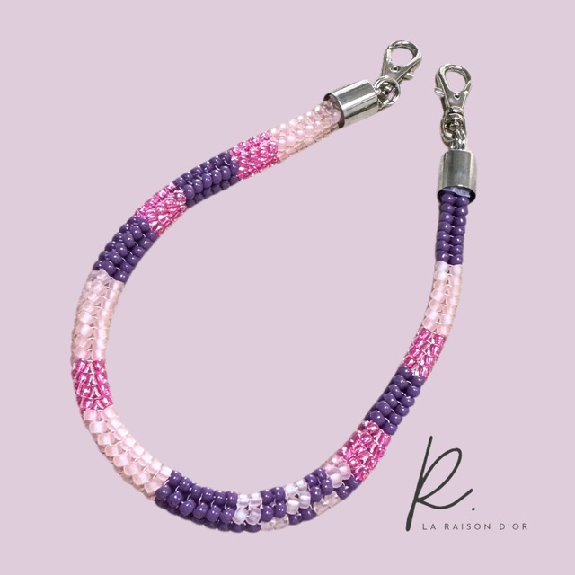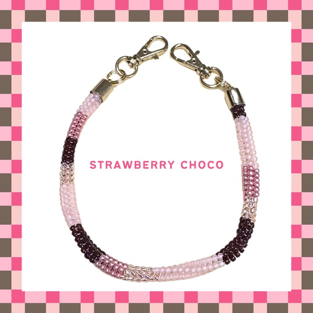 いちごチョコのような可愛らしい色のストラップ♡ ブレスレットをしてるようなビーズハンドストラップです♪