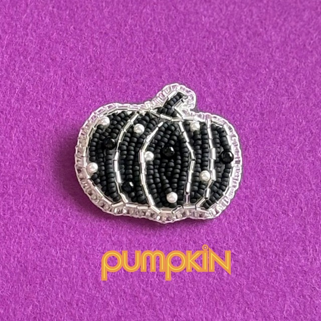 さりげなく、でもおしゃれにハロウィンを楽しみたい。 愛らしいパンプキンモチーフを、あえてシックなモノトーンに。 ブラックのビーズと、ところどころに光るパールのドットが、 シンプルながらも遊び心をくすぐります♪ いつものバッグやストール、お洋服に添えるだけで、洗練された秋の装いに。特別なイベントだけでなく、普段使いにもおすすめです♡