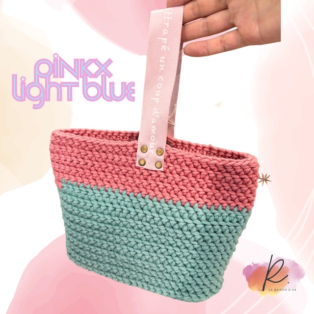 軽やかなコットン糸で編み上げた、シンプルで使いやすいワンハンドルバッグです。 カラーは4色展開。 • ピンク×ライトブルー:優しい雰囲気の可愛らしい配色 底部分には合皮を使用しているため、汚れにくく日常使いに安心。 お財布、タオル、メイクポーチ、ハンディファンなど、お出かけ必需品がしっかり入るサイズ感です。 シンプルなデザインだから、ビーズ刺繍のブローチを合わせて自分らしくアレンジするのもおすすめ。 お出かけやお買い物、旅行のサブバッグとしても大活躍します。