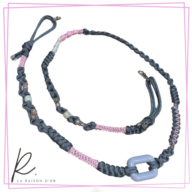 淡いピンクにグレーの組み合わせは オールシーズンいけます♪ 大人かわいい色です♡ 長さ:1.2m ※強い力を加えると破損する可能性があります