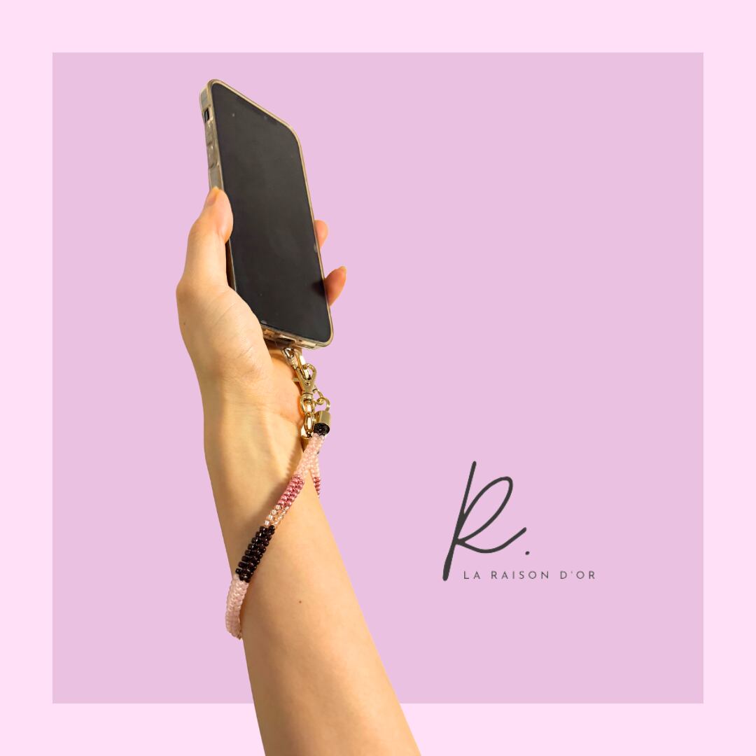 手首にかけるとブレスレット感があり、携帯の落下防止にもなり